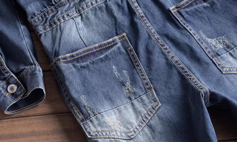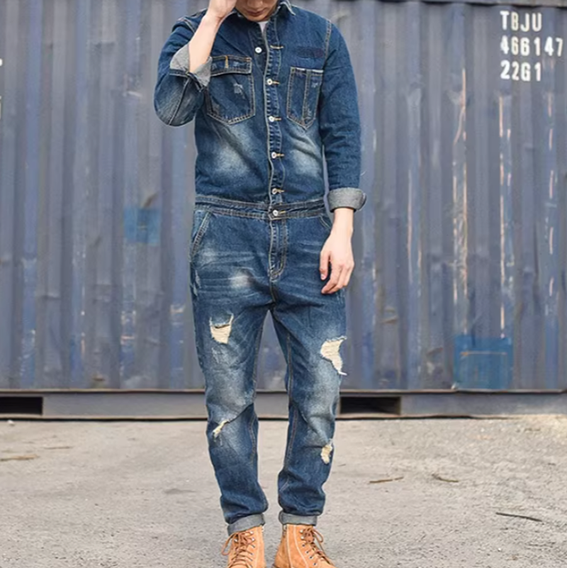 Distressed denim overalls V0140