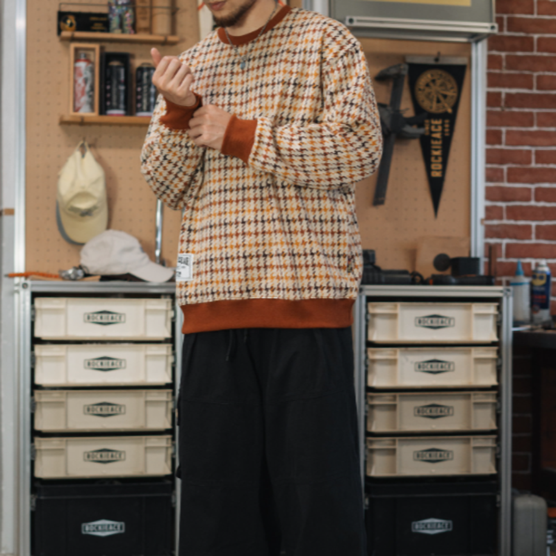 American retro check fleece shirt V0325